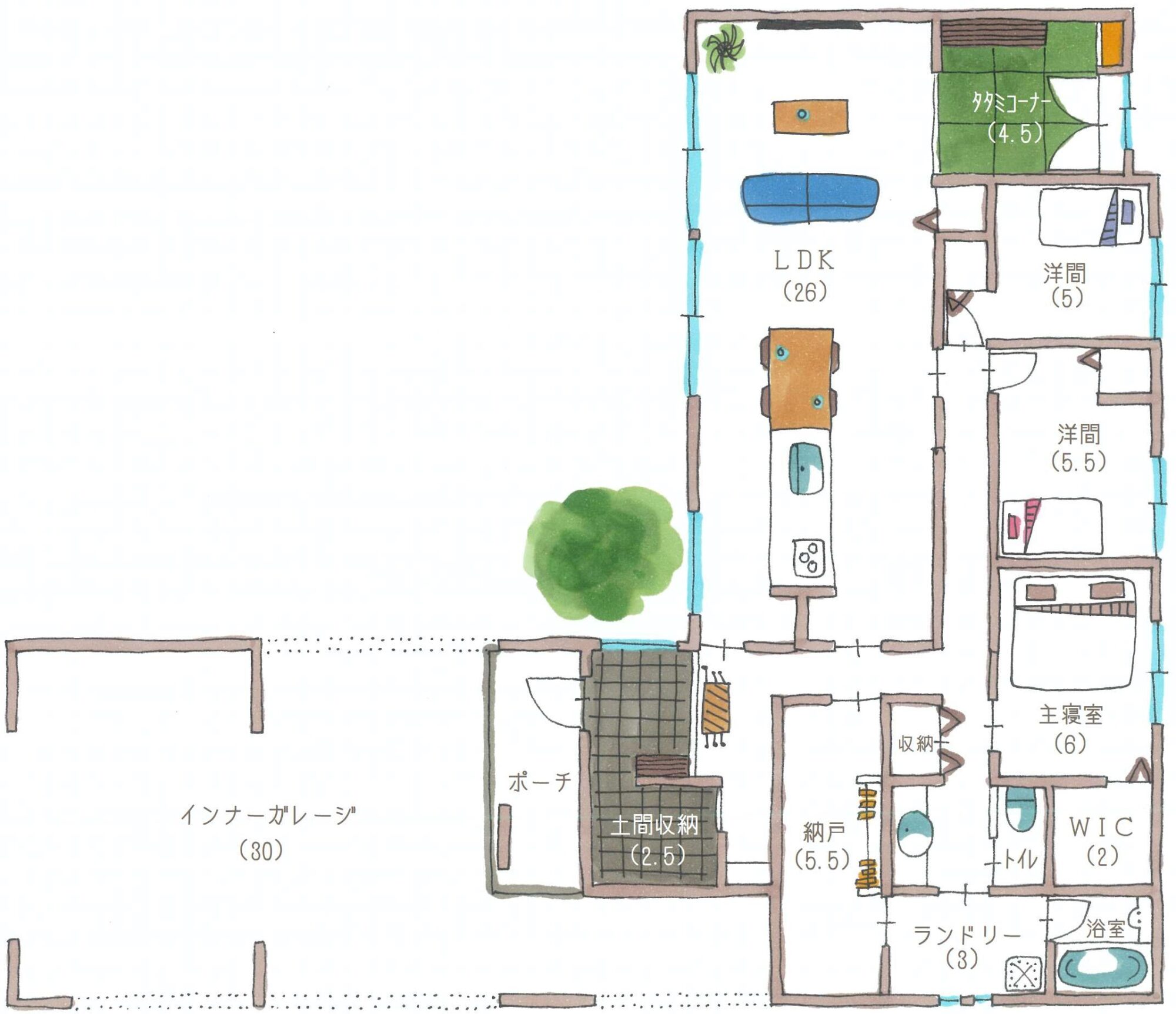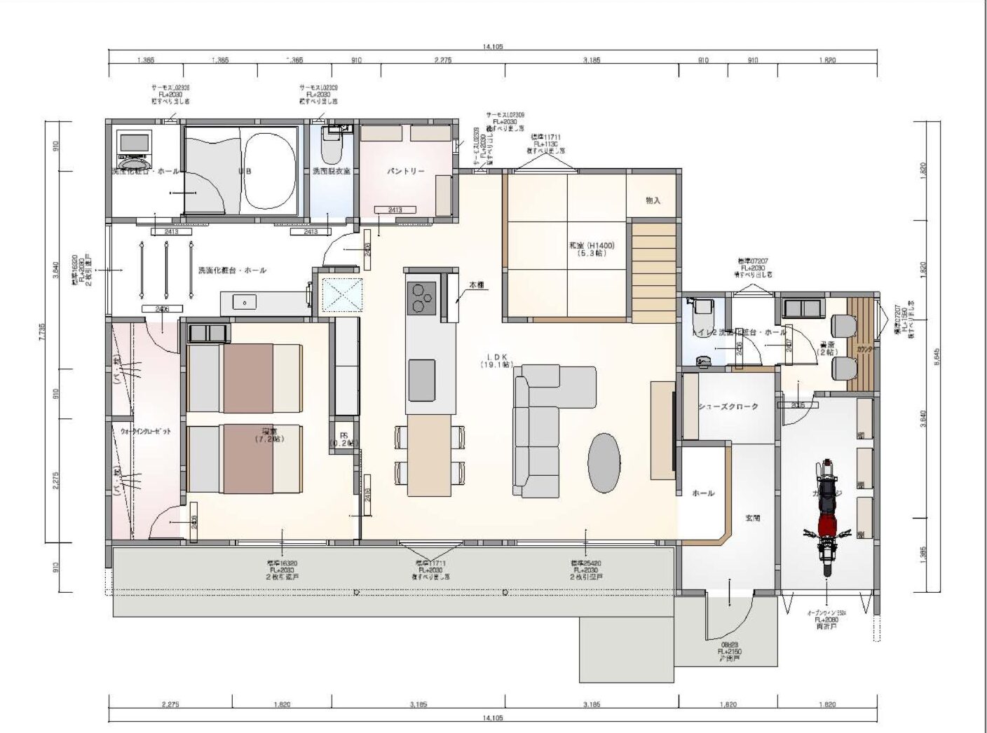 間取りインナーガレージプラン -御代田町の平屋その5-もふもふウォーカ。