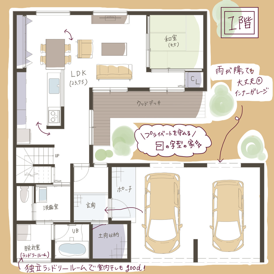 平屋でビルトインガレージを作るのはアリ?間取り例や注意点など - 姫路の工務店「クオホーム」 本田準一のここだけの話。