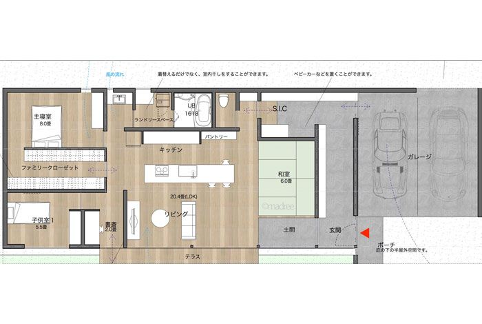 ビルトインガレージの間取り一覧理想の間取り図と出会う「madree マドリー 」。