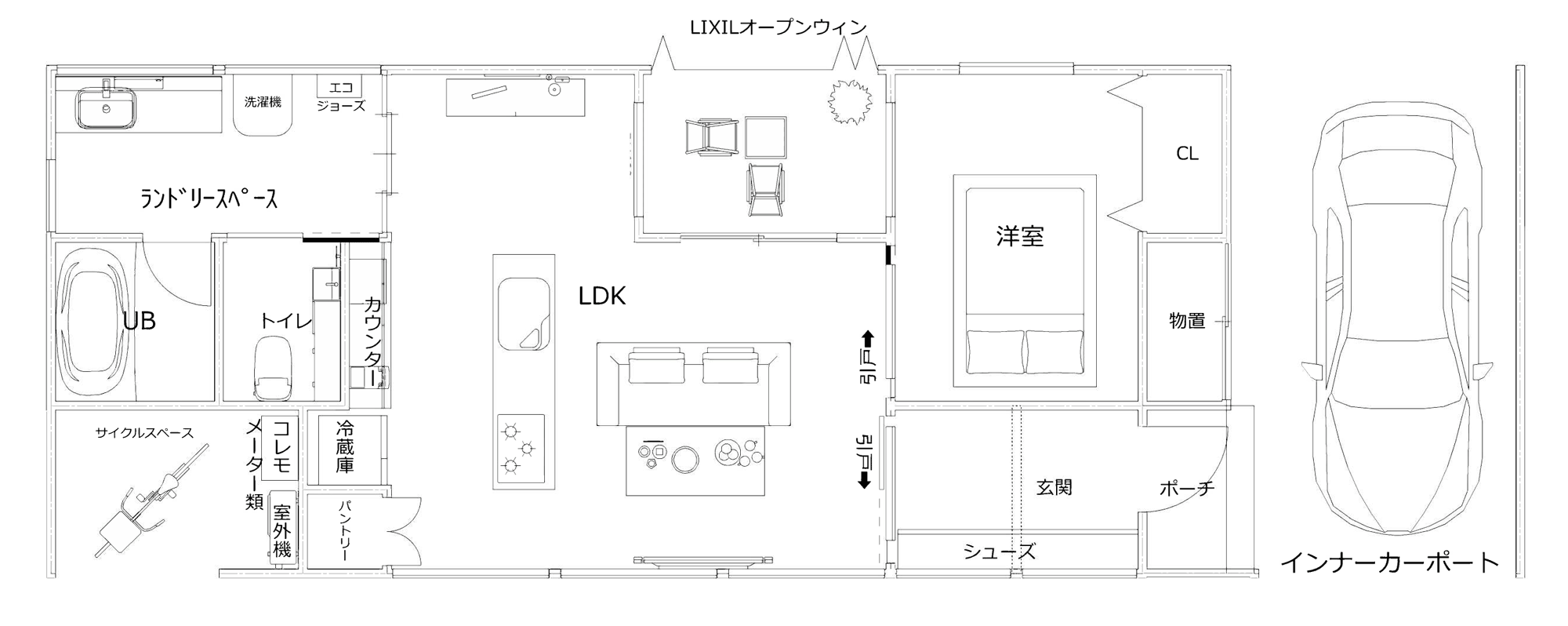 3LDK+インナーガレージ 平屋+インナーガレージという理想的な住まい - 平屋カウンター山口の新築平屋・注文住宅。