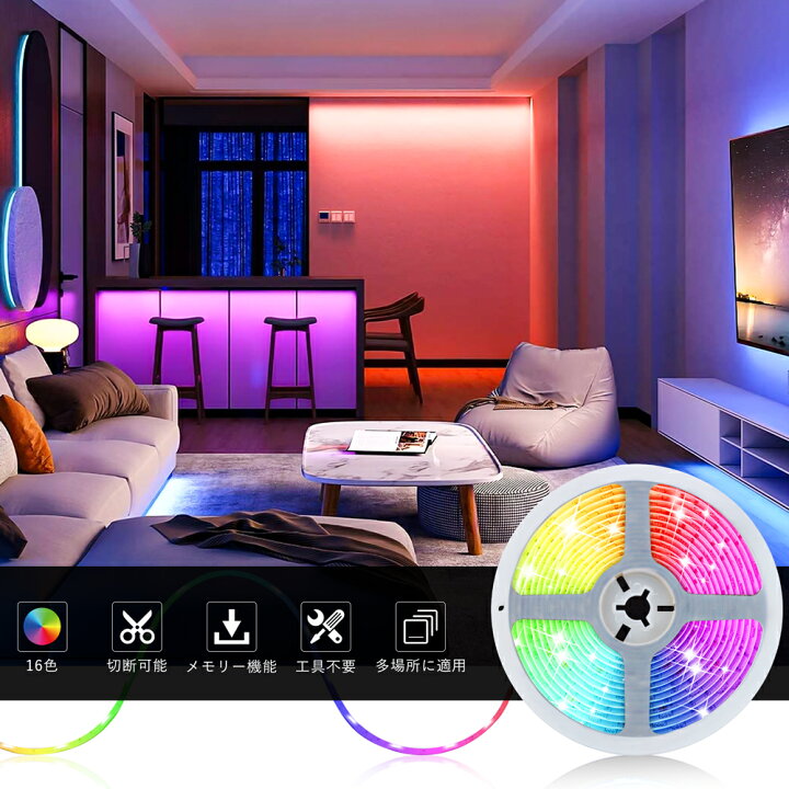 テープライト 5M 高輝度 調光可能 LEDテープライト DIY LEDテープ RGB 間接照明 棚下照明 簡単設置 防水 20色 切断可能 折り曲げ明るい 多場景適用 おすすめの通販はau PAY マーケット - Mikironaau PAY マーケット-通販サイト。