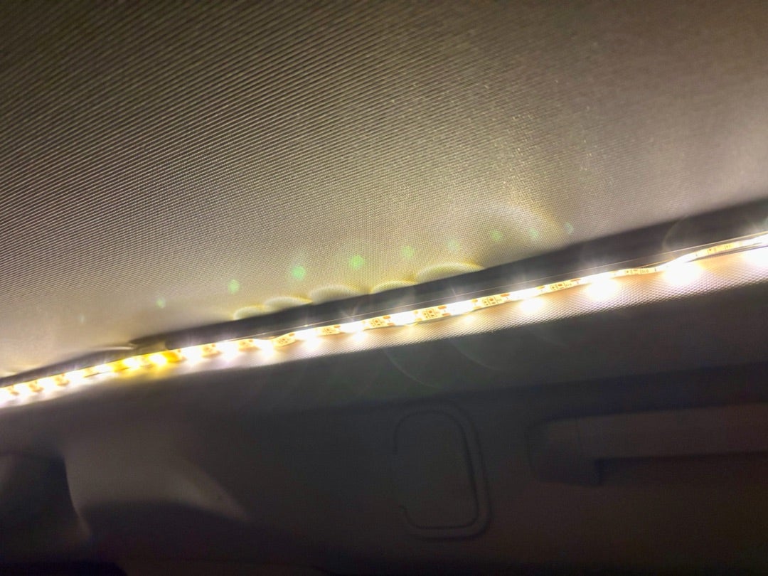 車中泊に欠かせない!車内の天井内張りを剥がしてLEDテープライトで照らすTeamSEEK。