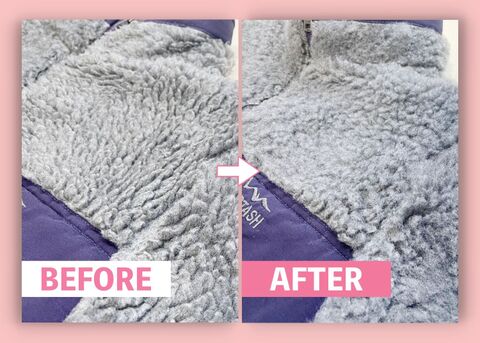 ゴワゴワのボア生地が復活! ライフハック ダイソー商品でフワフワに戻す裏技ママリ。