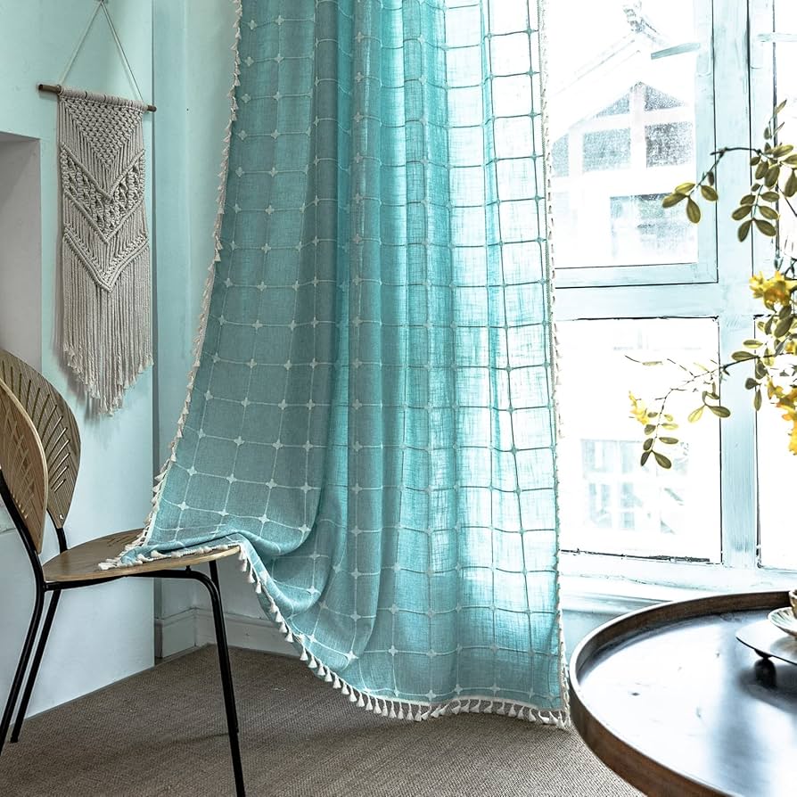 Amazonカーテン ドレープカーテン 和風 紺色 和室 半遮光 フック式 レール対応 3タイプ掛け方 タッセル付き アジアン風 カーテンボヘミアン 半遮光 タッセル付き1枚組 カーテンタッセル アイボリー 通気性が良い タッセル 1枚組 アジャスターフック付き 子供部屋 小窓 腰窓掃き出し窓。