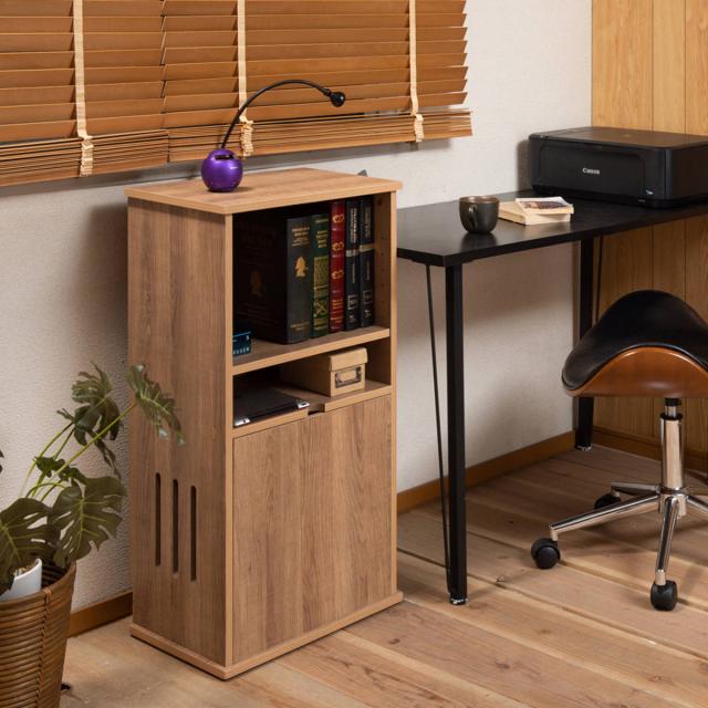 収納棚 リビング収納 棚 フタ付き おしゃれ 扉付き ディスプレイラック 木製 フラップ扉 チェスト シェルフ ボックス 本棚 木目調 ヴィンテージ調収納ボックス オープンラック 隠す ディスプレイシェルフLOWYAの本棚 :Mebel メーベル。