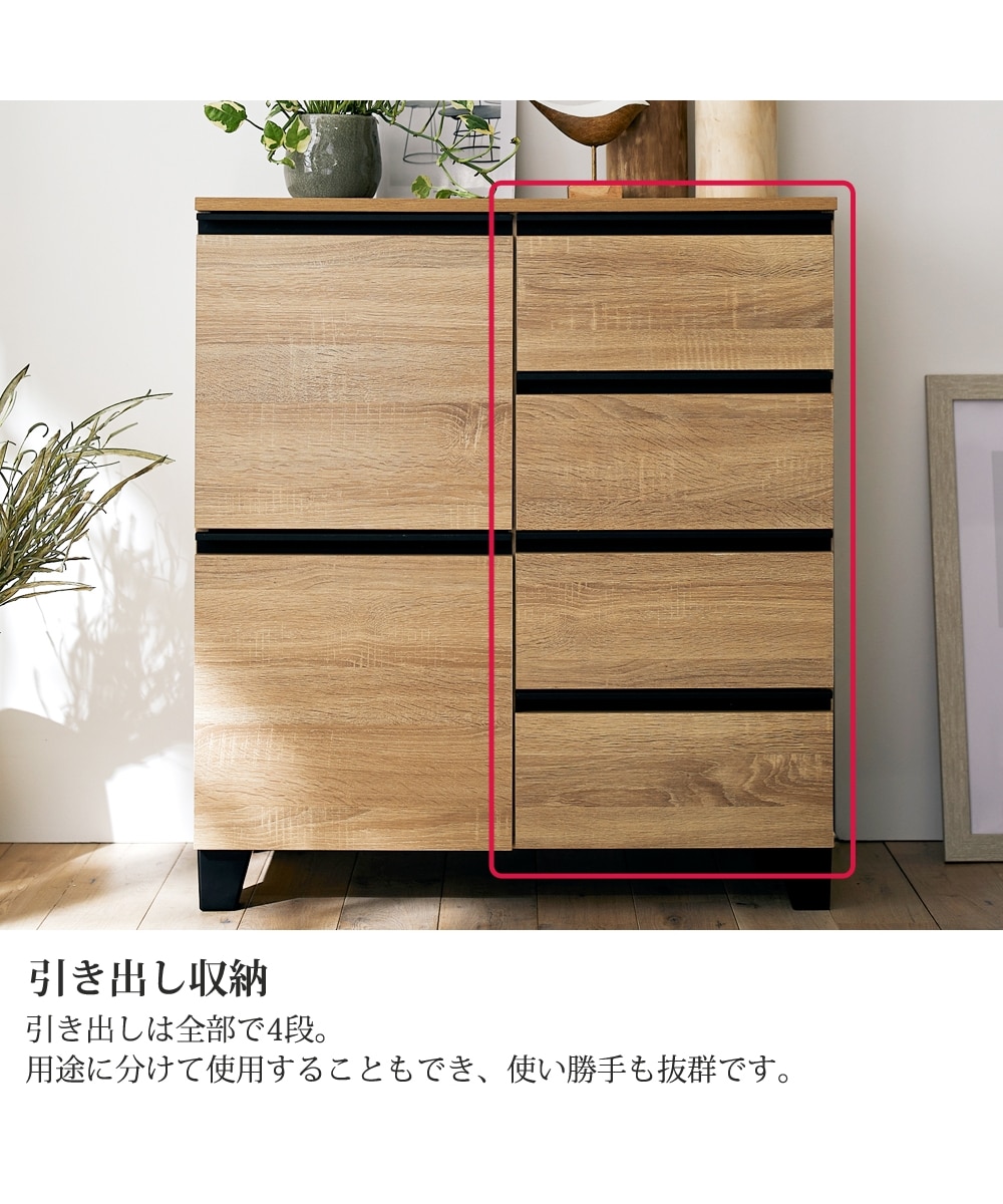 収納力抜群!綺麗な木目調のシンプルキャビネット 通販 ニッセン。