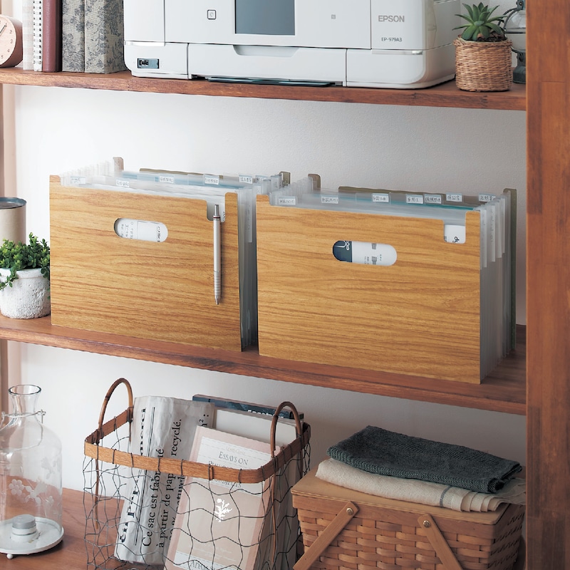 大容量で書類を整理できる木目調書類ケース 書類ケース 書類ファイル 卓上チェスト 通販のベルメゾンネット。