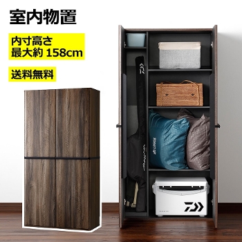 室内物置 お部屋の収納 大型 倉庫 保管庫 大容量 キャビネット 屋内 収納 木目 ダークブラウン 巾木よけ ゴルフクラブ スノーボード 釣り竿アウトドア用品 レジャー用品 掃除用具 組立家具 送料無料※一部地域除く。