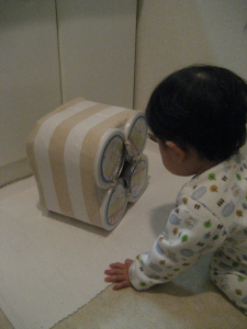 手作りおもちゃ☆ミルク缶deおむすびマン椅子。☆*colorful days☆*。