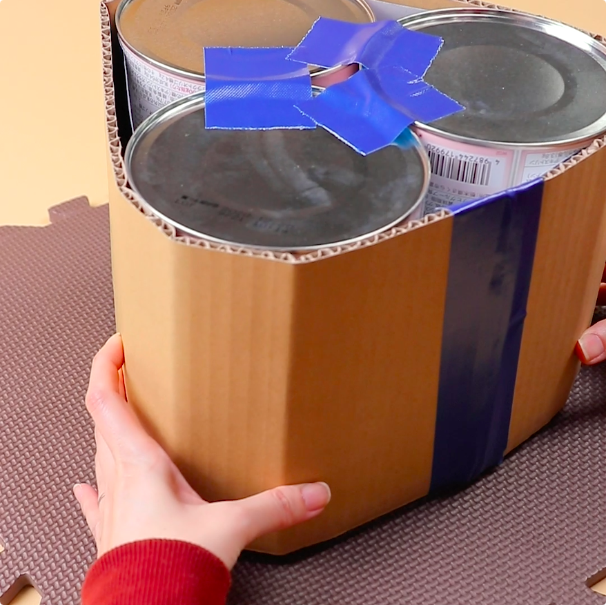 切って貼るだけ♪粉ミルク缶で子ども椅子&太鼓。
