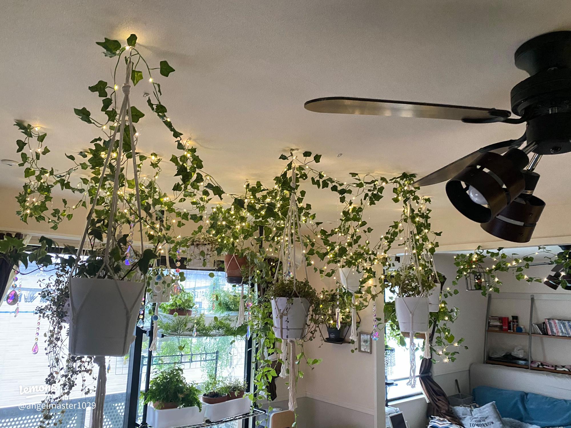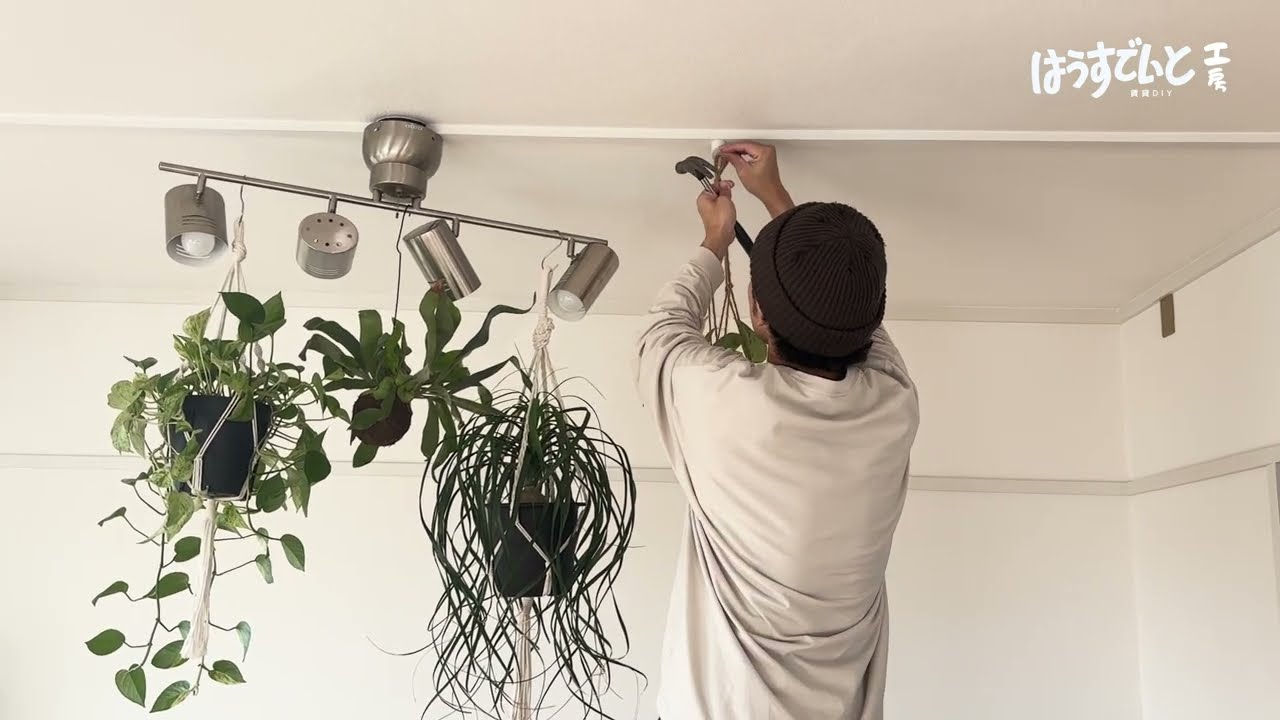 賃貸で天井から植物をハンギングする方法てんてこ。