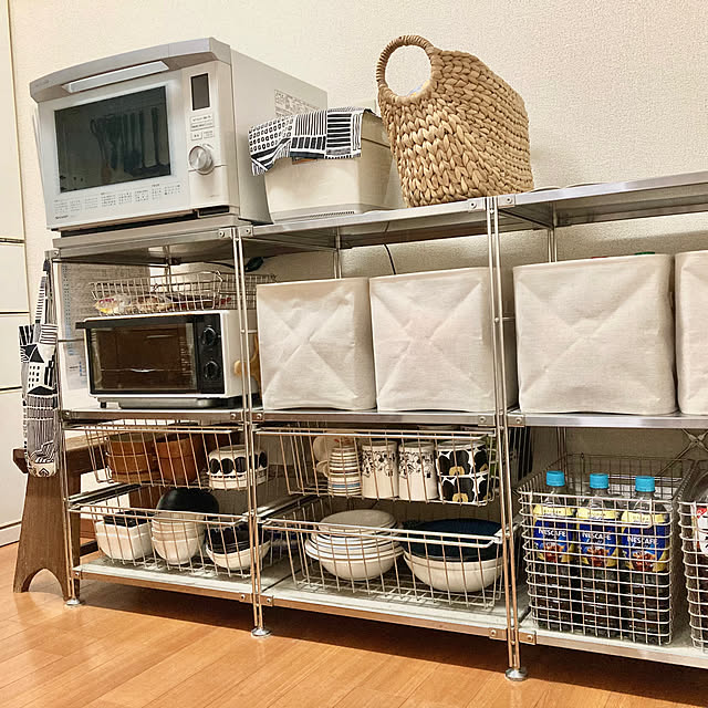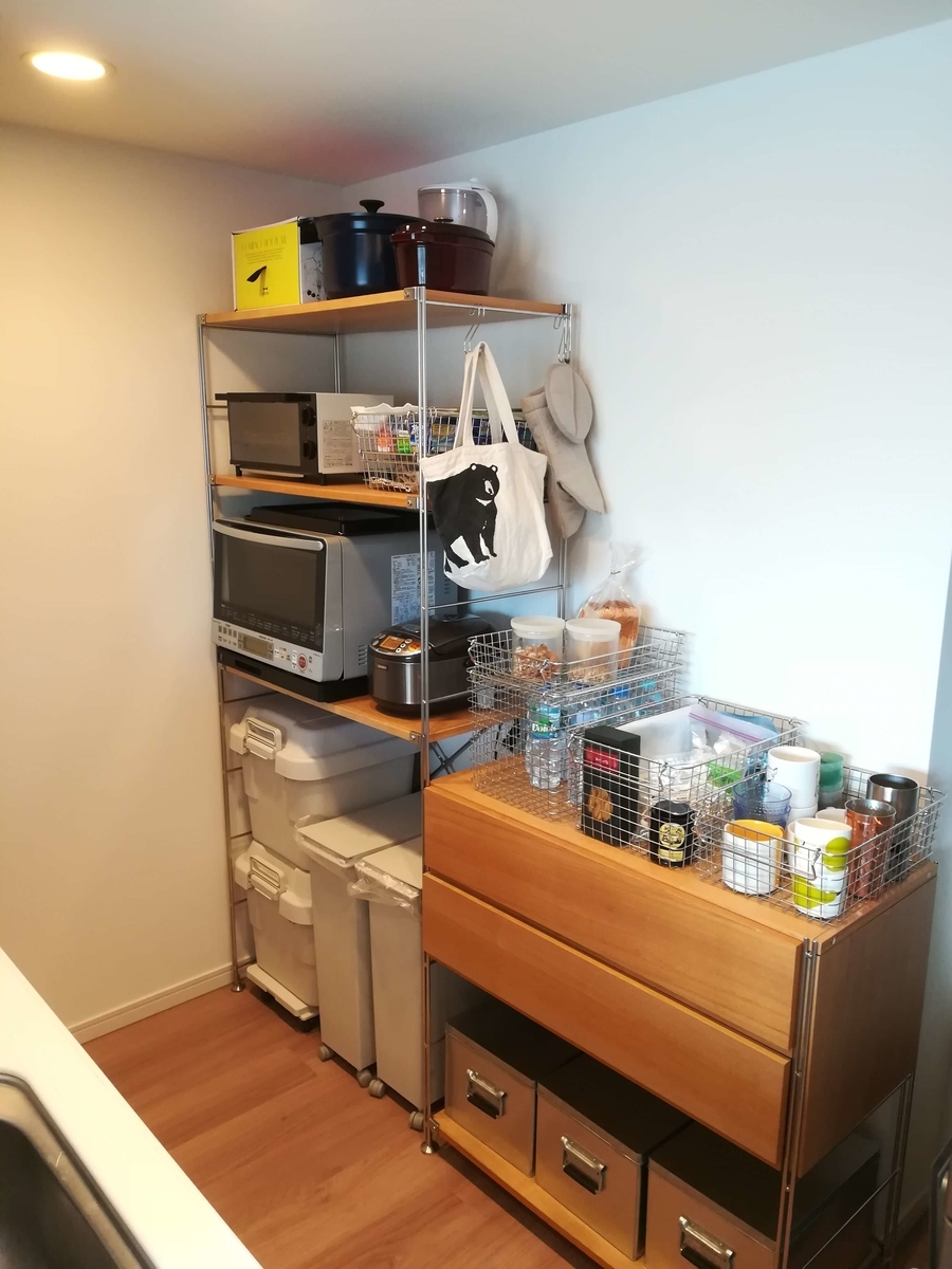 無印のステンレスユニットシェルフとやわらかポリエチレンケースでパントリーを作りました。│おうちレビュ。