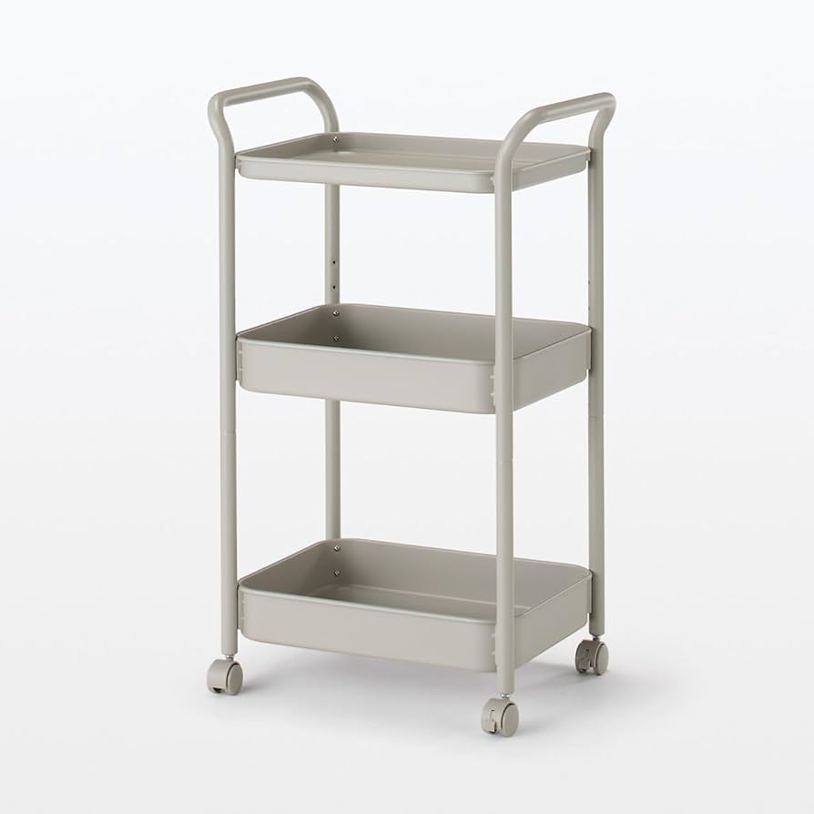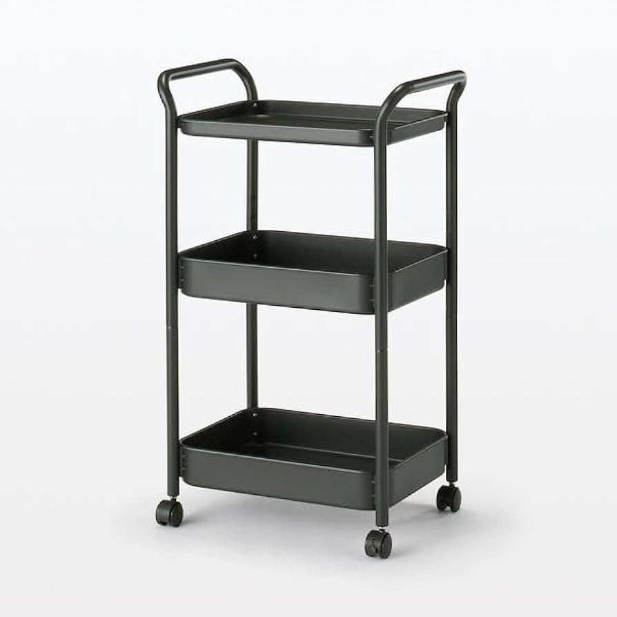 ハピオ木野 シンプルだから使いやすいスチールパイプワゴンラック 無印良品。