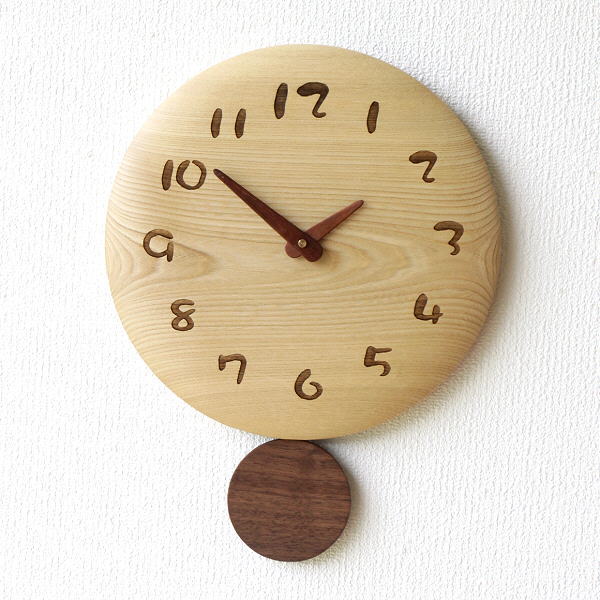 壁掛け時計 壁掛時計 掛け時計 掛時計 おしゃれ 振り子 天然木 木製 ウッド 木の振り子時計 サークルNAhkp3554ギギliving。