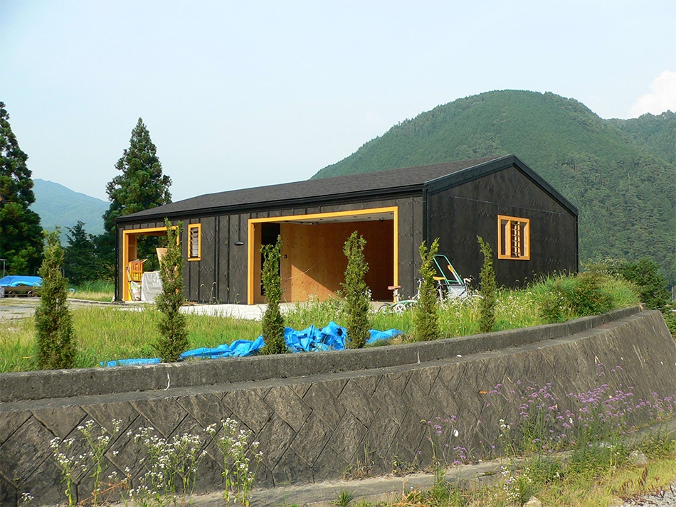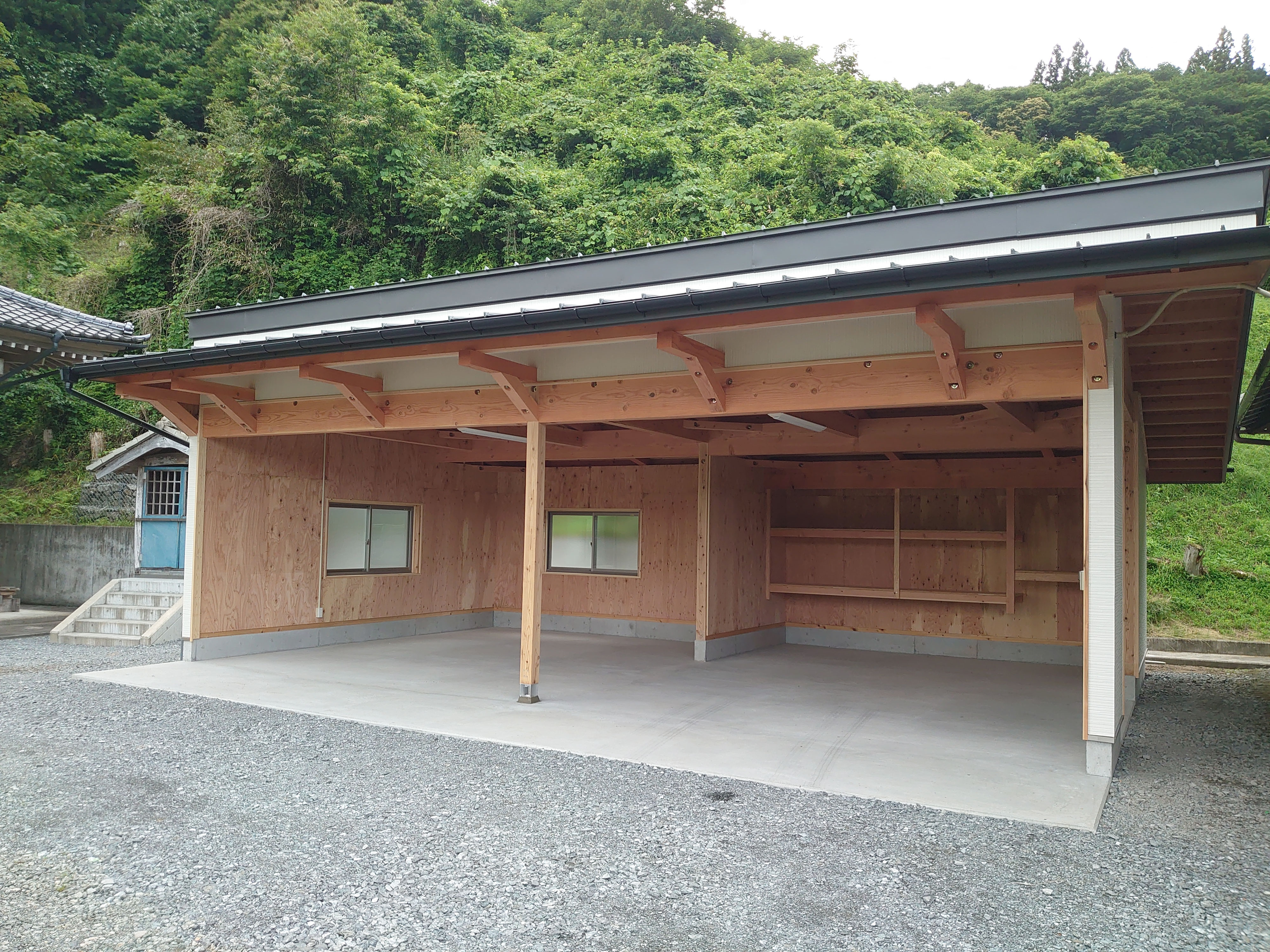 木造ガレージの完成山内建匠有限会社。