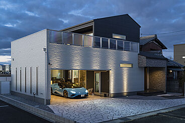 安心の設計で木造ながら大きなガレージのある家を実現。買い物や子どもの送り迎えなどの奥さまの日常の使い勝手、趣味を楽しむ家族でのお出かけの動線。