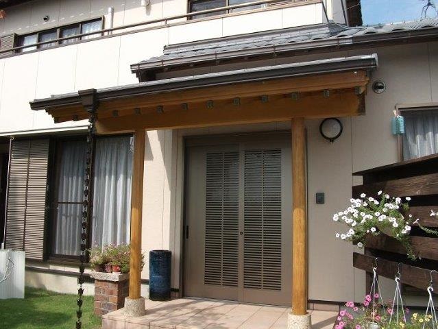 神奈川県相模原市南区の施工事例 玄関庇 ひさし 木部 灰汁洗い工務店を探すなら いい家ネット。