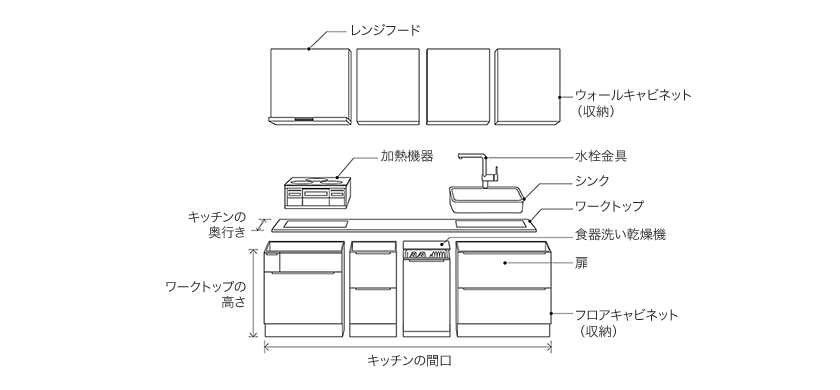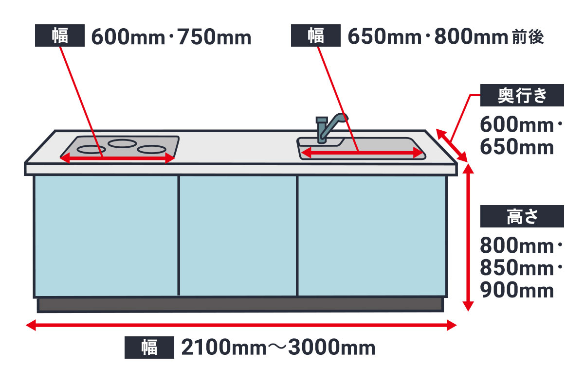 システムキッチンのサイズ 寸法 の選び方は?高さ・間口・奥行きのベストサイズ、標準サイズ、キッチンレイアウトごとの注意点などを解説SUUMOお役立ち情報。