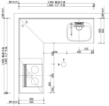 1816サイズのL型キッチン DXF autocad DWG2df-kit_0022。