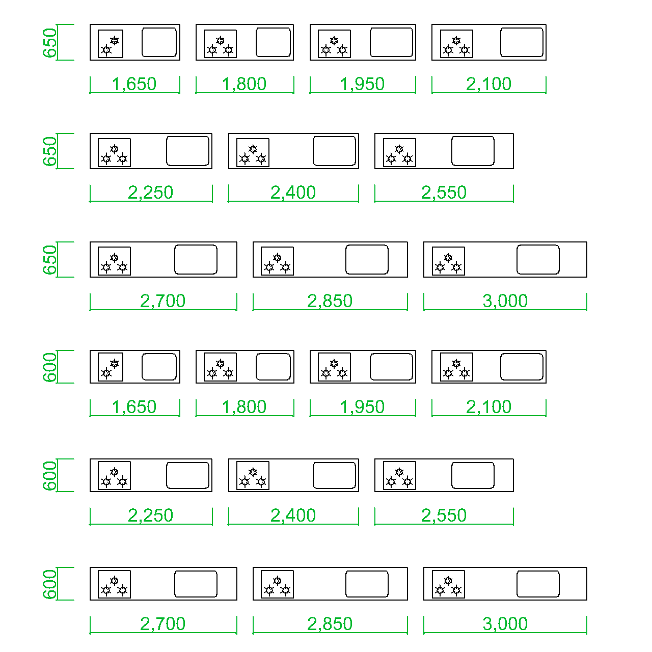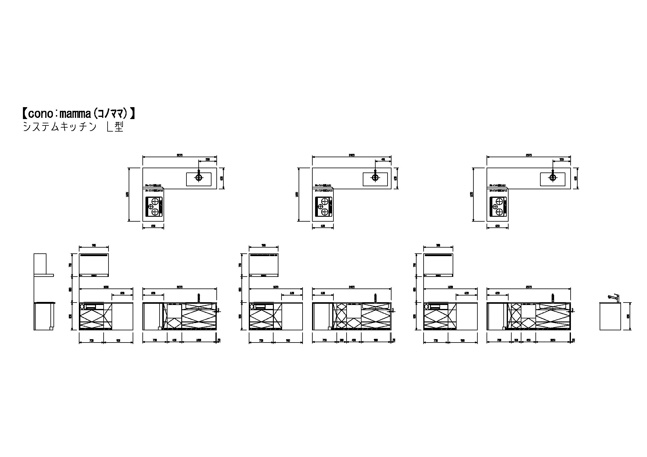 I型キッチン 簡易表示・参考図 サイズ比較DXF autocad DWG2df-kit_0021。