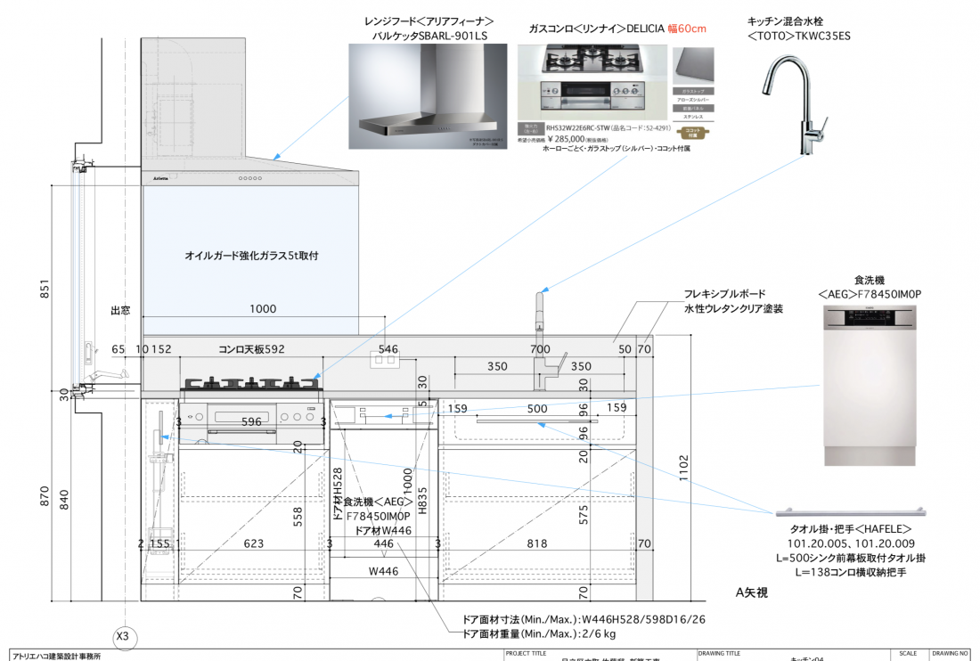 キッチン本体編②" 図面で見る変更、寸法&カラー選択とクラシックなイメージ - わたのキッチンブログ。