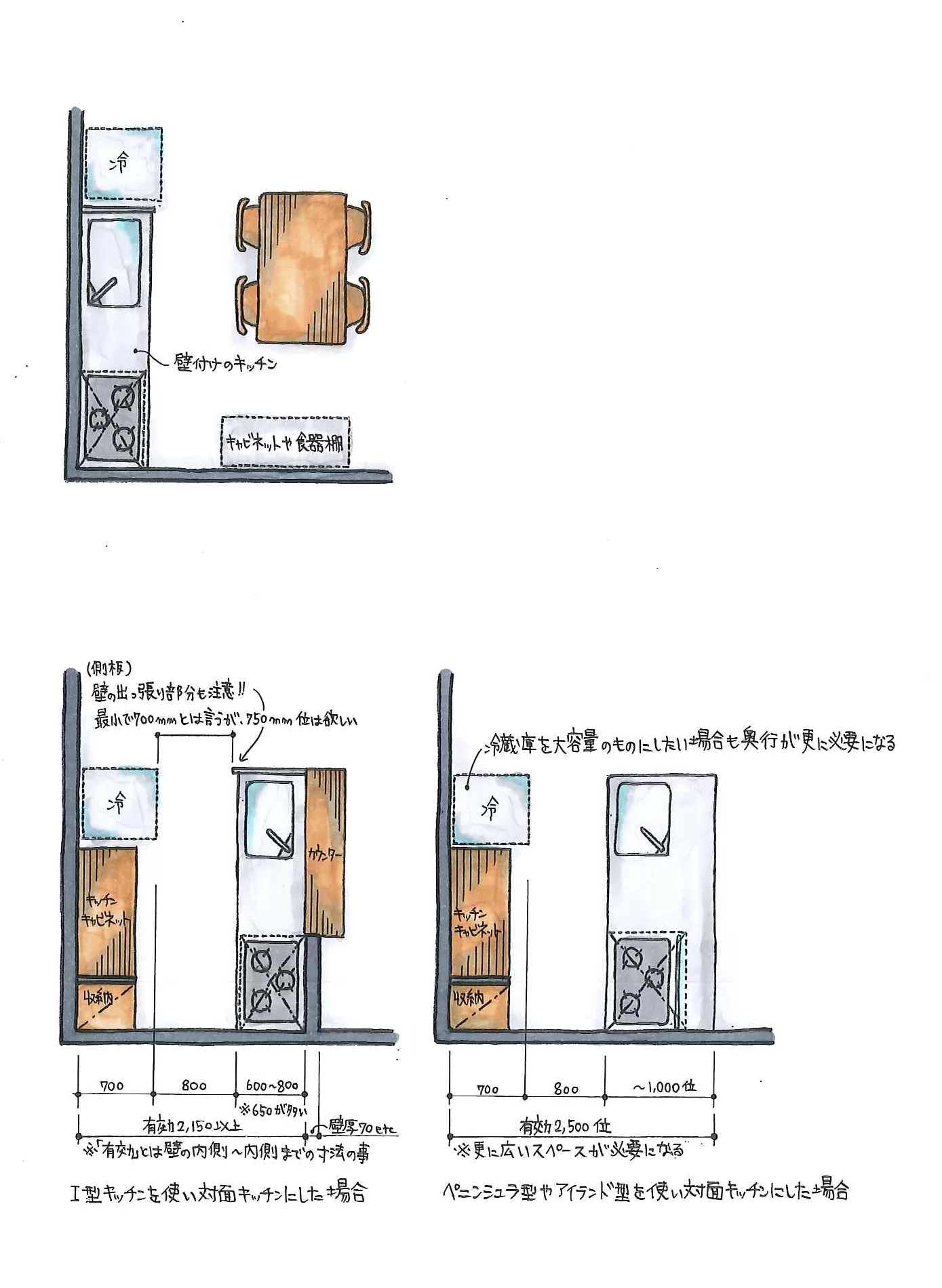 5分でわかる各キッチンに必要な間取り寸法 レイアウト別に図面で解説します。有象無象の家建て人の日常。