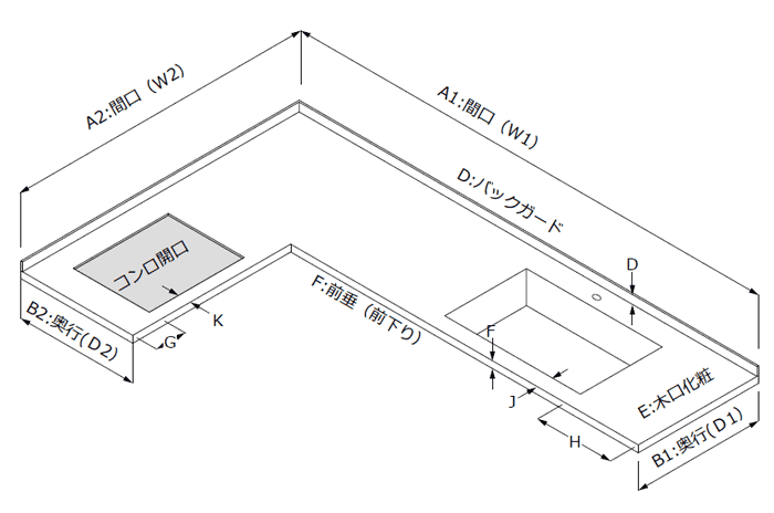 ステンレスワークトップL型 2分割仕様自動概算見積E:kitchen Old。