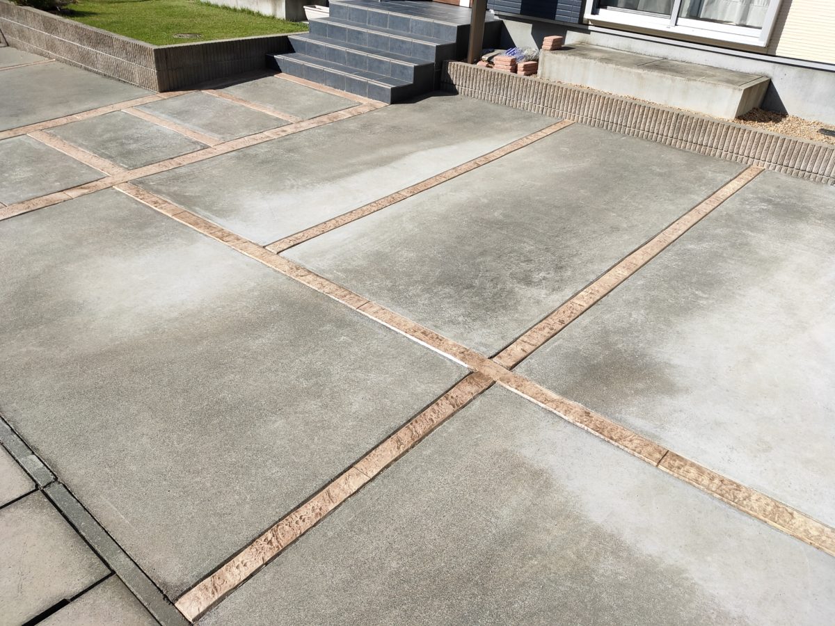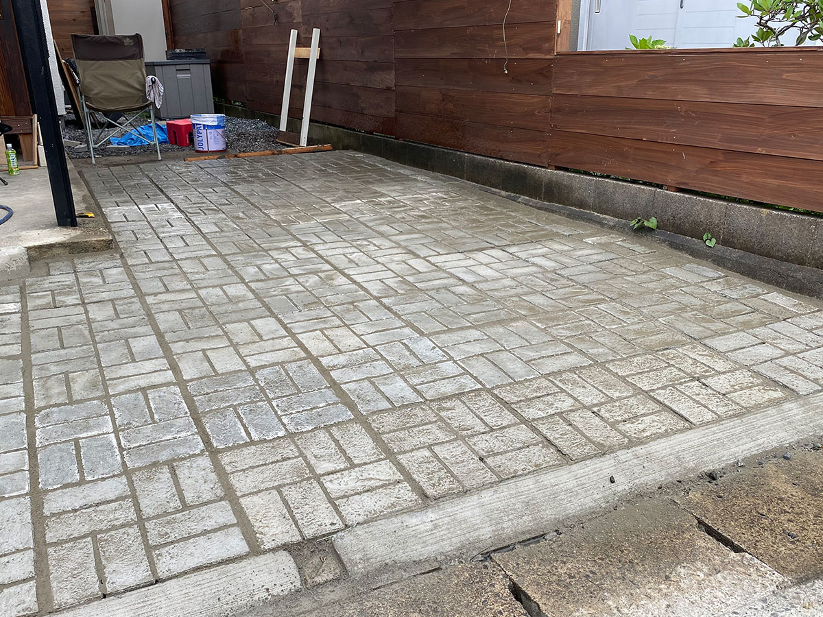 スリット目地をコンクリートで美しく補修鈴鹿市のスタンプ仕上げ施工事例 - 株式会社メイク・プラスター三重県鈴鹿のスタンプコンクリート職人。