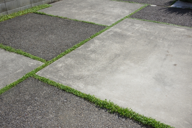 防草対策 コンクリートvs固める土、駐車場の雑草対策、目地隙間を完全シャットアウト - 株式会社メイク・プラスター三重県鈴鹿のスタンプコンクリート 職人。