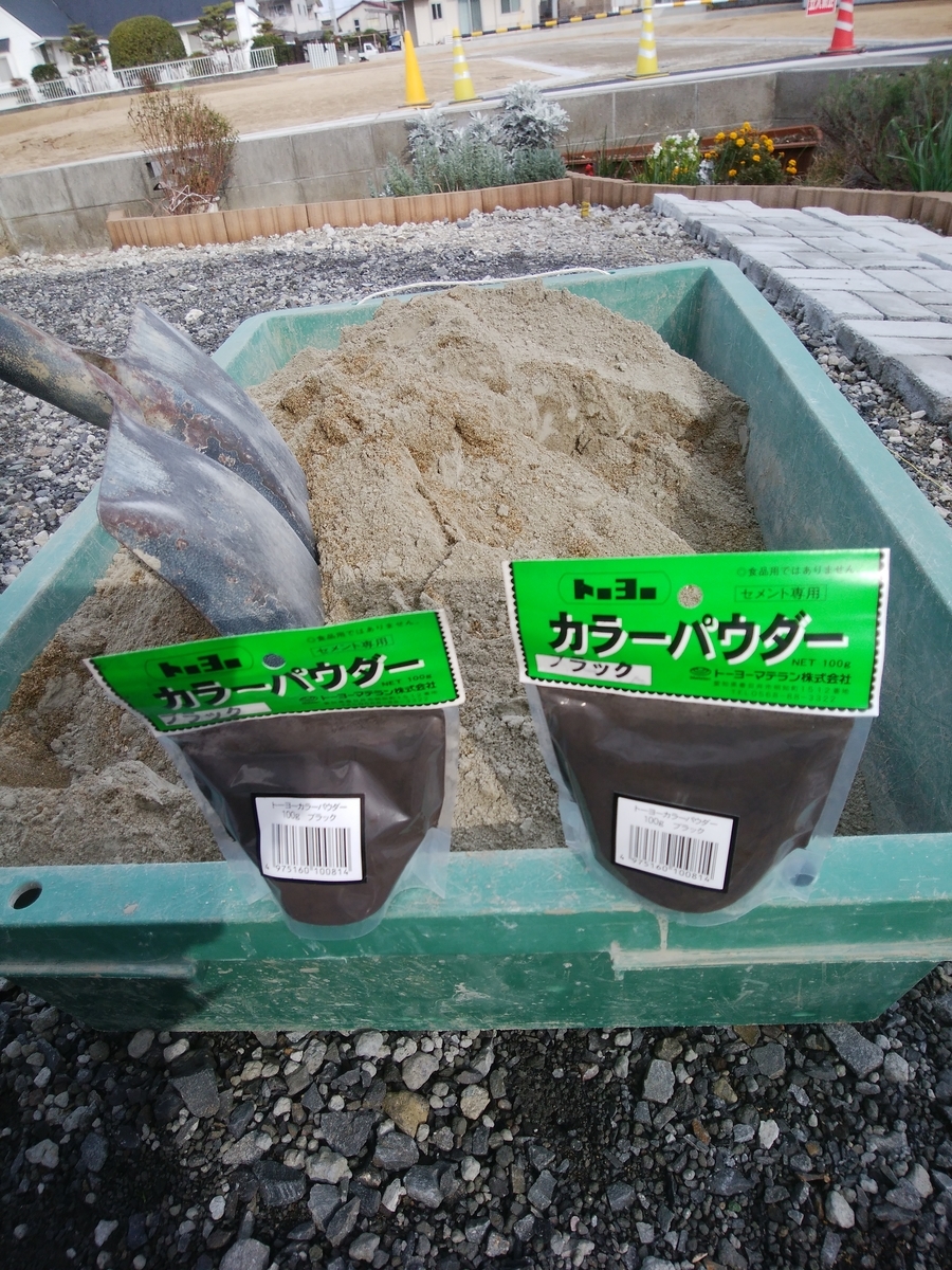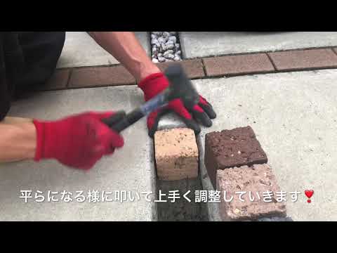 DIY 駐車場コンクリートの隙間をレンガで埋める方法 空練りモルタル。