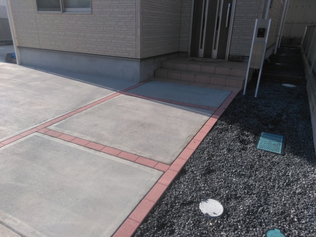 駐車場ガレージ 目地埋め舗装 土間コンクリートの外構施工例 現場番号:13132- ファミリー庭園滋賀店。