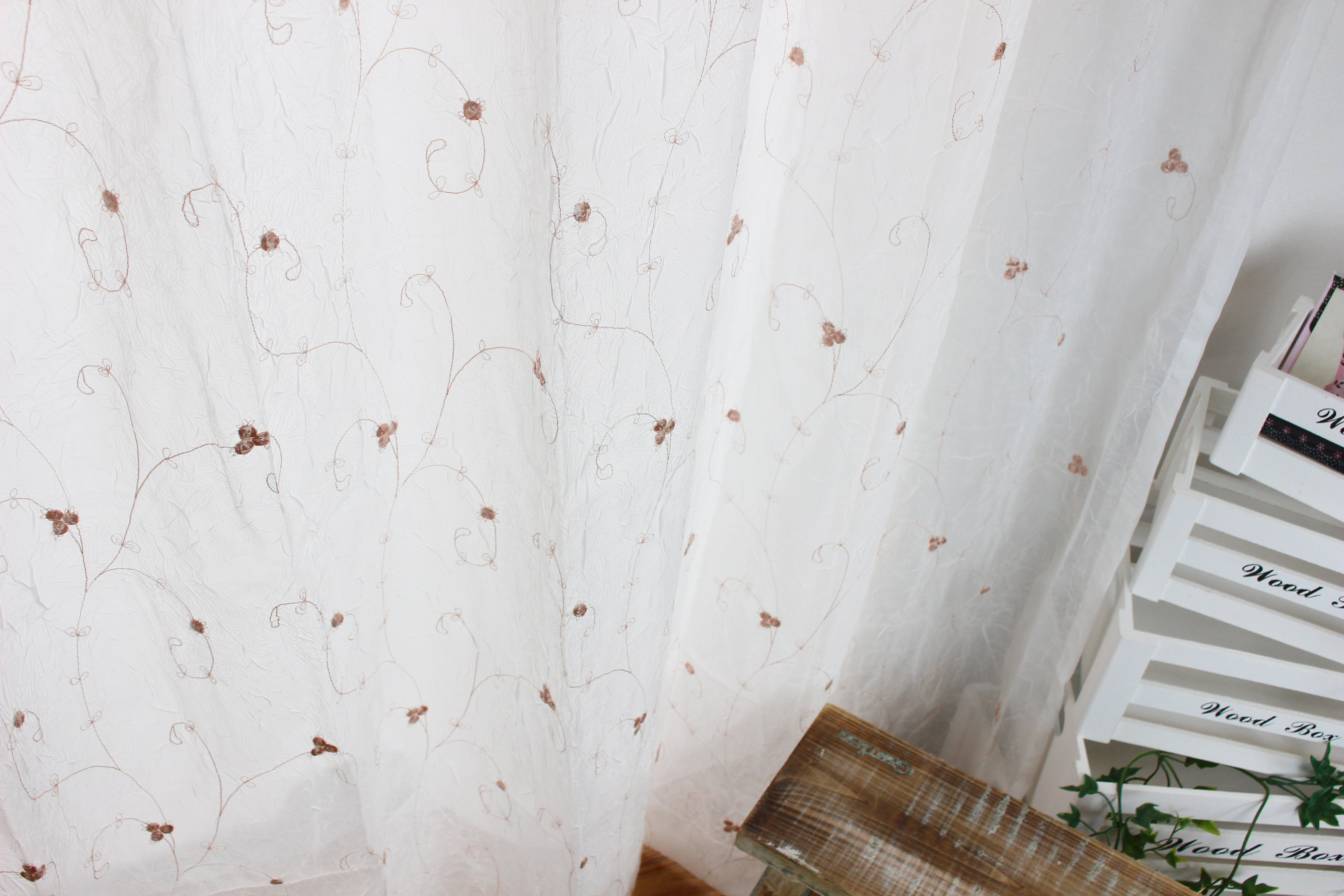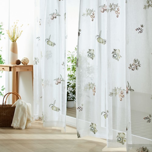 ドライフラワー柄刺繍の非遮光カーテンSHOPPINGTateYoko タテヨコ。