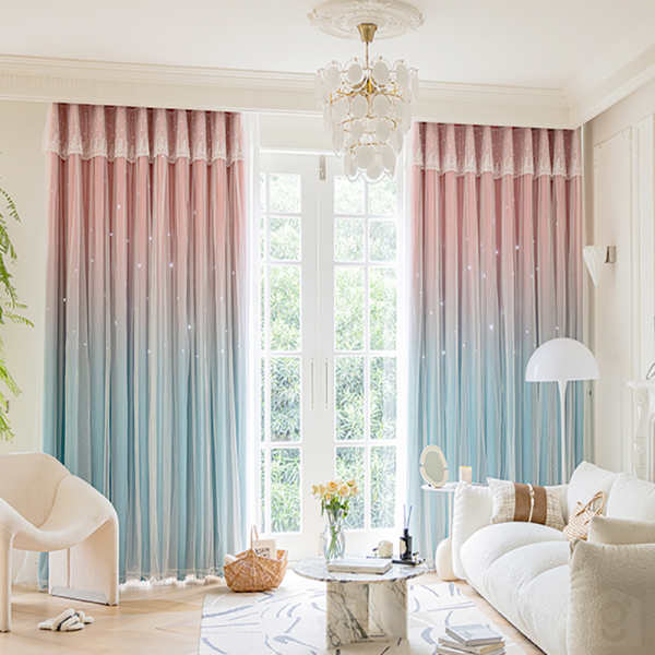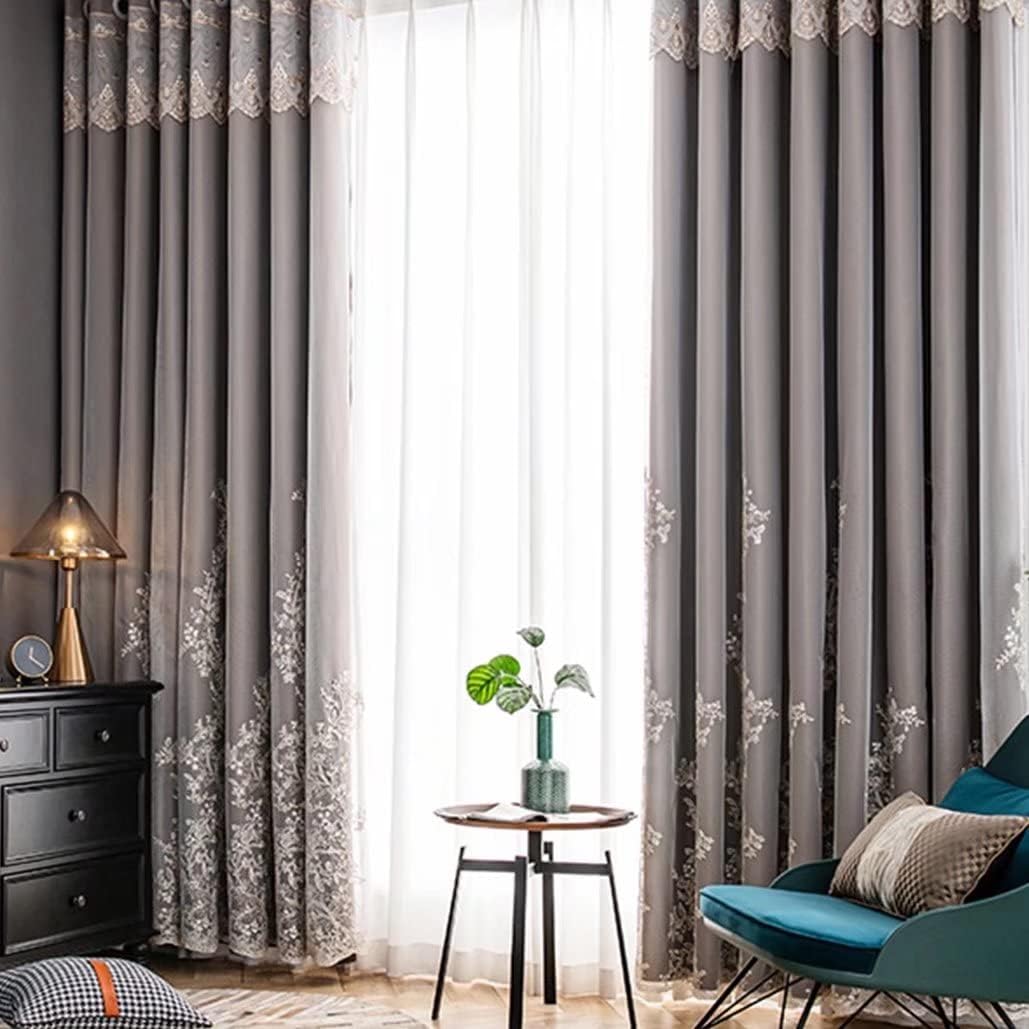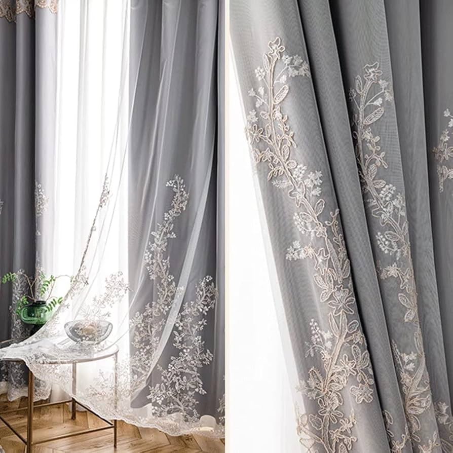 花刺繍のレースとサテン遮光カーテン。