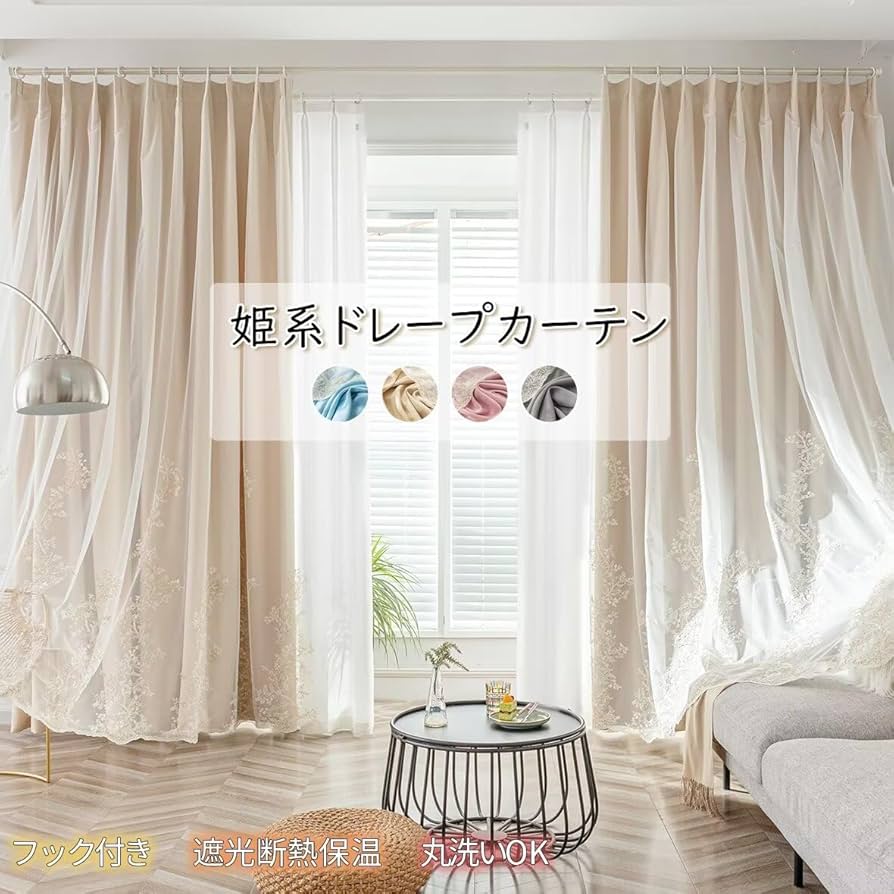 カーテン 遮光 姫系カーテン かわいい 刺繍カーテン 二重カーテン おしゃれ レースカーテン 姫 一体型 遮光率90% 厚地 無地 Amazonカーテン刺繍 おしゃれ かわいい 遮光カーテン 姫系カーテン 二重カーテン レースカーテン 姫 一体型 遮光率90% 厚地 無地 通気性が良い。