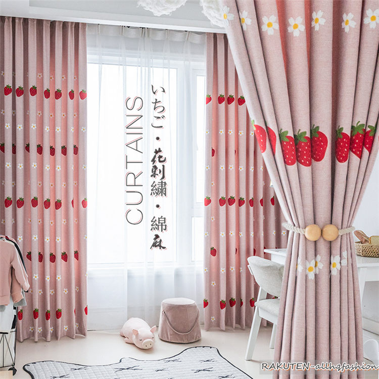 カーテン 苺の柄 カーテン 幅80-350cm 遮光カーテン 立体刺繍 遮光率75% いちご。