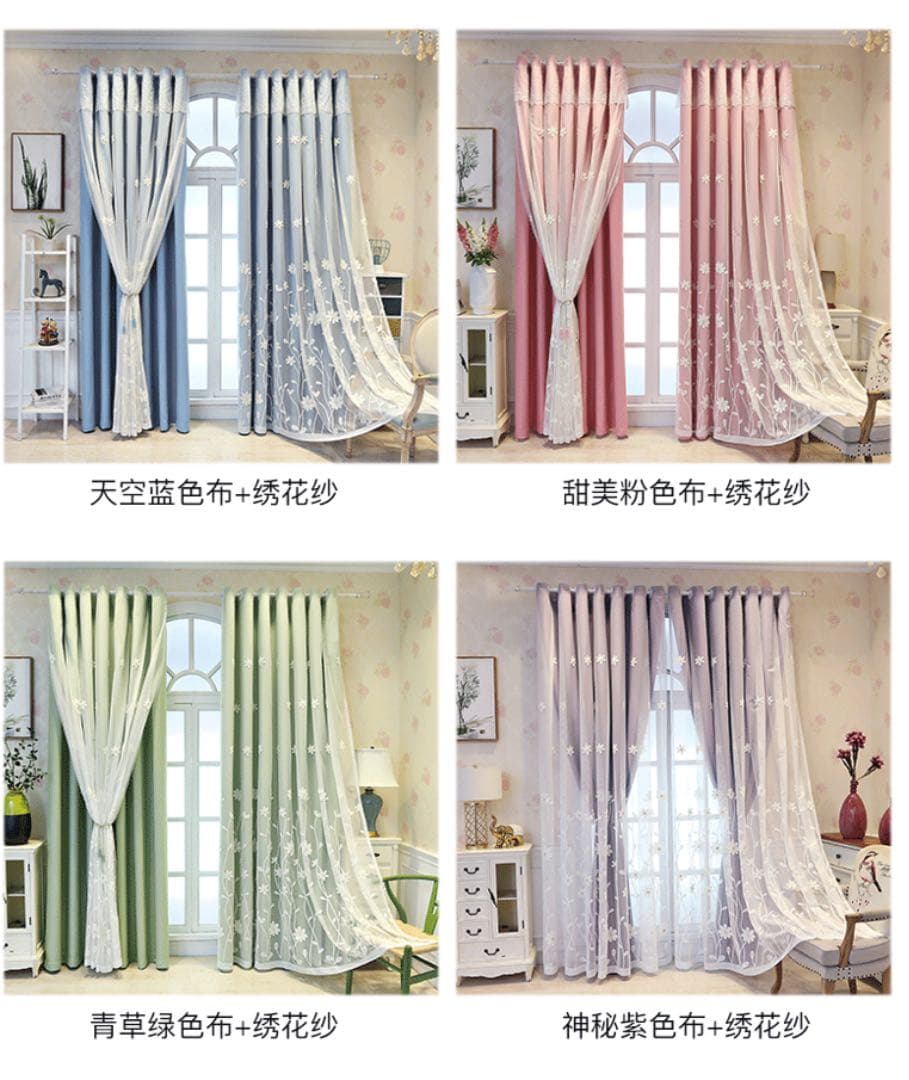 カーテン 刺繍二層一体カーテン 可愛いカーテン 遮光カーテン レースカーテン。