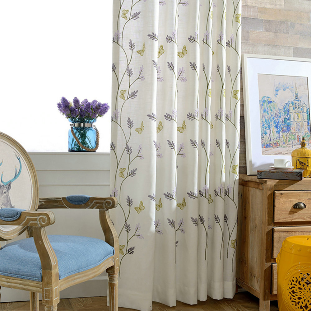カーテン 遮光 2枚組 大きいサイズ おしゃれ 保温 遮光カーテン 子供部屋 子供部屋 花柄 刺繍 女の子 かわいい 幅150 幅60cm?200cm丈60cm? 草花の周りをひらひらと舞う蝶の刺繍 北欧デザインのレースカーテンイメージから探す,北欧1cm単位で注文できるカーテン専門。