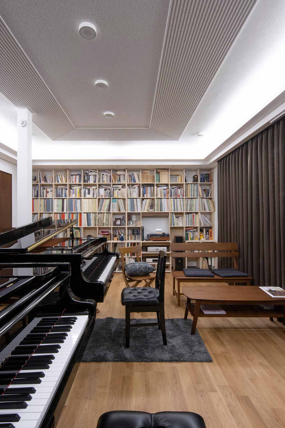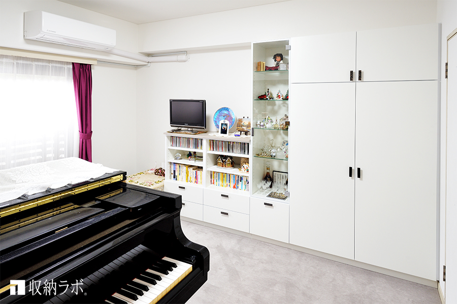 オーダーメイドの壁面収納で、開放感のあるピアノのレッスンルームを実現。 - オーダー家具・壁面収納・収納ラボ。