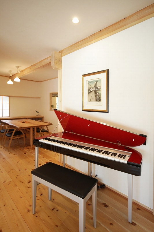 自然素材の風合いが心地よいカフェ風インテリアのピアノ室アーキノート設計室。