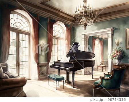 北欧インテリア ピアノのある部屋のイラスト素材58103971- PIXTA。