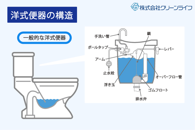 洋式トイレの構造・仕組みをわかりやすく解説!つまりやすい原因も紹介-水道修理のクリーンライフ。