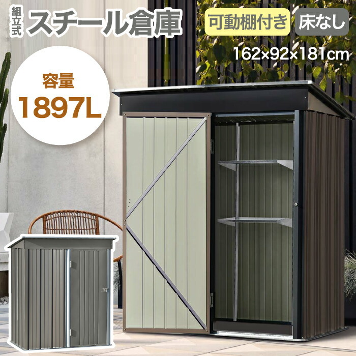 10%OFF! 可動棚付き スチール物置 屋外倉庫 戸外収納庫 BROWN。