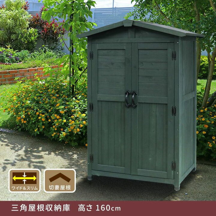 物置 屋外 収納庫 三角屋根 大型 幅163×奥行99×高さ197㎝ 安心設計 吊り戸式 可動棚10㎝間隔 棚板補強加工 鍵付き 転 三角屋根が可愛い木製 屋外収納庫 ワイド 送料無料 物置 倉庫 納戸 納屋 小屋 大容量 おしゃれ かわいい 安い ガーデニング用品 収納 DIY 激安 北欧。