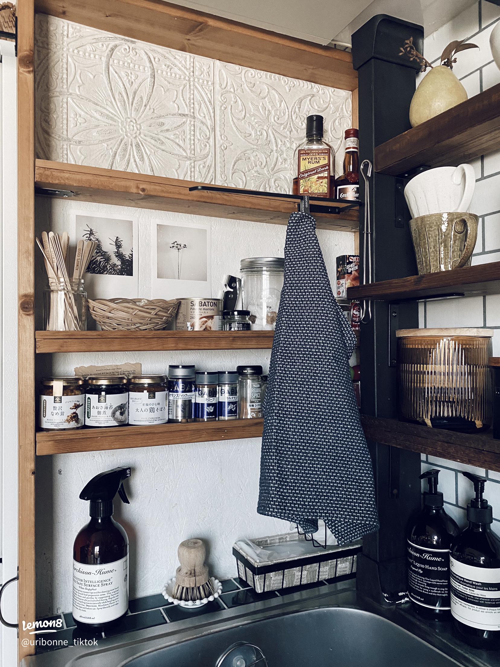 キッチンに収納棚を取り付けました*。DIYレシピ。
