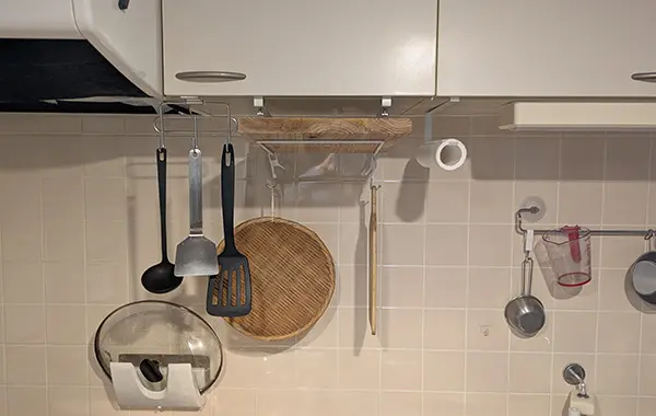 賃貸キッチンの吊り棚、使い方の極意!今すぐ試せる簡単アイデア集。