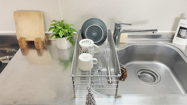 水切りかごの置き方で賃貸キッチンは変わる!作業台が広々使えて洗い物をラクにするコツ - 片づけ収納ドットコム。
