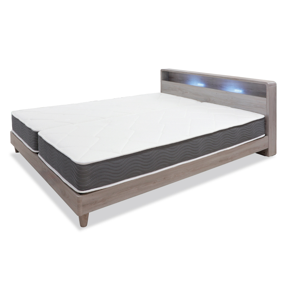 ベッド クイーン160 SS+SSポケットコイルマットレス付き ブラウン 低床 連結 ロースタイル すのこ 照明付き 宮付き 棚付き コンセント付き組立品 クイーンサイズベッド 単品 ベッド クイーンベッド 160 SS+SSベッドフレームのみ シャビーオーク。