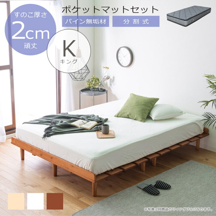 全商品ポイント10倍!!ベッドフレーム マットレス付き マットレスセット 北欧 おしゃれ すのこベッド キングサイズ ローベッド クイーン ベッドポケットコイル すのこ 通気性 パイン材 無垢材 シンプル ブラウン ナチュラル ホワイト 分割式 dショッピング デンマーク。