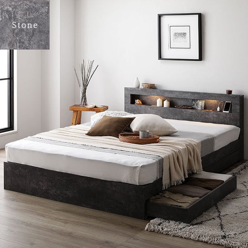 ストレージトップベッド 収納付きベッド クイーン 20cm厚マットレスセット 引き出し2杯 棚 2口コンセント USB-C usb type-ctype-A ステージベッド大型家具配送ベッド・マットレス通販専門店 ネルコンシェルジュ neruco。