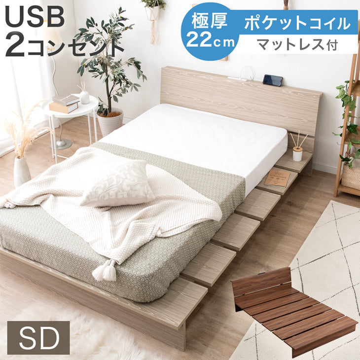 ローベッド マットレス付き 極厚22cm ポケットコイル 宮付き 2口コンセント USB ベッド シングルベッド セミダブルベッド ダブルベッドクイーンベッド マットレス付 マットレスセット シングル セミダブル ダブル クイーンサイズタンスのゲン Design the Future。